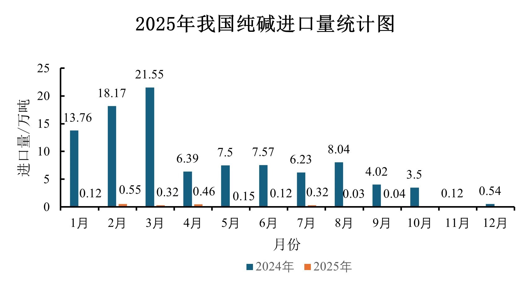 1. 根据海关统计数据,2025年9月我国进口纯碱0.04万吨,同比减少99.00%;1-9月我国进口纯碱总量2.11万吨,同比减少97.74%。