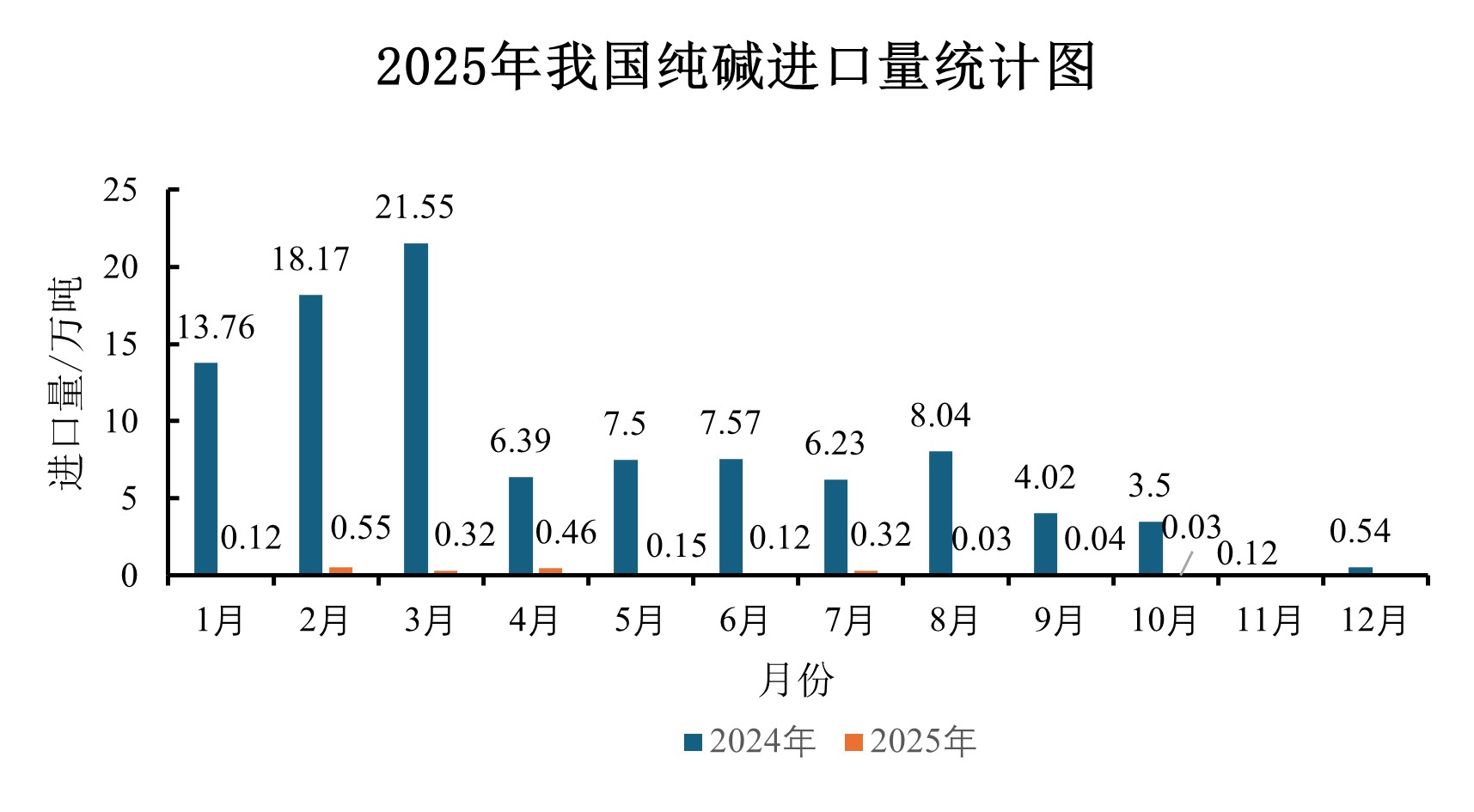 1. 根据海关统计数据,2025年10月我国进口纯碱0.03万吨,同比减少99.14%;1-10月我国进口纯碱总量2.14万吨,同比减少97.79%。